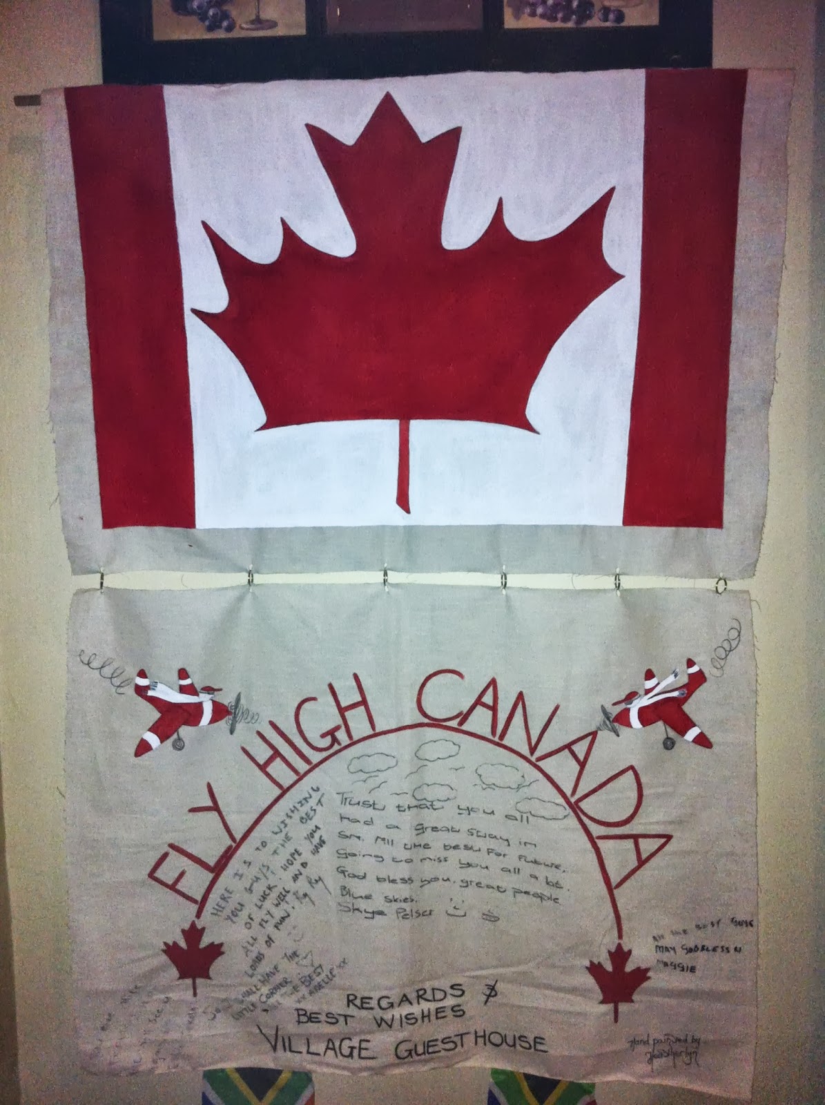 | The folks at the Village Guest House dropped this banner off today for us. It was a bit too windy at the field so we hung it up in the Manor House.... looks good! Great people here! |