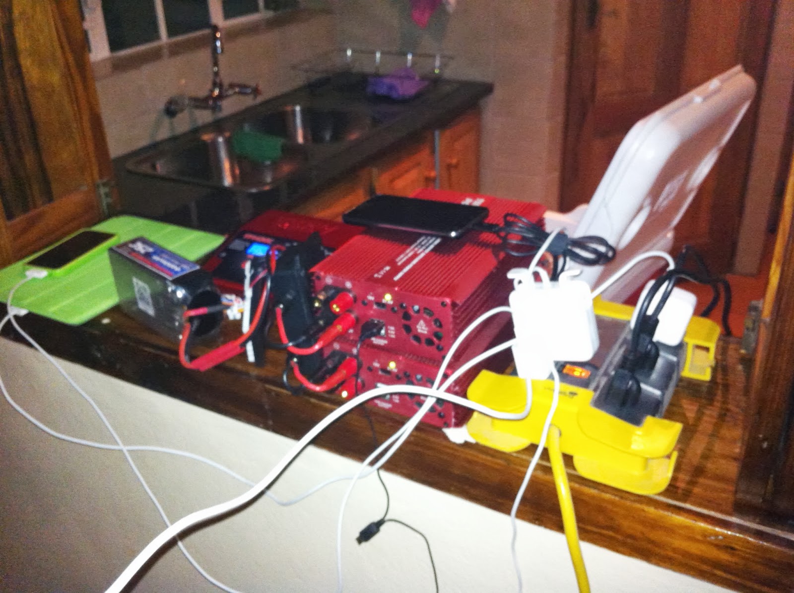 The primary planes were quickly assembled and Michi went up first. His plane's battery voltages were checked (max is 42.56 Volts). Voltages were as follows: Michi 41.9v, Chad 41.7v, Colin 41.8v, Ethan 41.8v